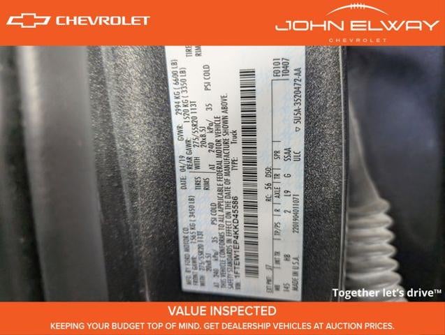 Five Star Detail, 4WD, 110V/400W Outlet, 2-Bar Body-Color Grille w/4 Minor Bars, 4x4 FX4 Off-Road Bodyside Decal, Accent-Color Angular Step Bars, BLIS Blind Spot Information System, Body-Color Front & Rear Bumpers, Box Side Decals, Equipment Group 501A Mid, FX4 Off-Road Package, GVWR: 6,600 lbs Payload Package, Hill Descent Control, Lariat Sport Appearance Package, LED Sideview Mirror Spotlights, Off-Road Tuned Front Shock Absorbers, Power Glass Sideview Mirr w/Body-Color Skull Caps, Remote Start System w/Remote Tailgate Release, Reverse Sensing System, Single-Tip Chrome Exhaust, Tray Style Floor Liner, Universal Garage Door Opener, Wheels: 18" 6-Spoke Machined-Aluminum. 2019 Ford F-150 Lariat VALUE INSPECTED VEHICLE: This vehicle is what we call Value Inspected. This is meant for our less expensive vehicles that may have some items that the dealer has discovered and elected not repair in order to keep the vehicle more affordable. These vehicles still undergo a full 120-point inspection as all others do, and any items deemed to be safety related are always repaired. This vehicle is sold to AS-IS. We expressly disclaim all warranties. I understand a limited-service contract MAY be provided with an option to upgrade the coverage if one is available. Please be aware any pre-disclosed items will however not be covered by the service contract. The dealer may offer repairs to any pre-existing conditions at time of sale, based on dealers internal pricing. These offers will be in effect for 90 days.