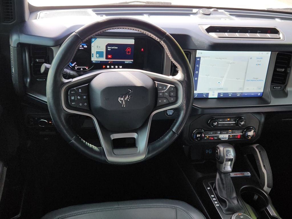 2021 Ford Bronco First Edition First Edition 10 Speakers, 4-Wheel Disc Brakes, 4.7 Axle Ratio, ABS brakes, Air Conditioning, Alloy wheels, AM/FM radio: SiriusXM with 360L, Auto High-beam Headlights, Auto-dimming Rear-View mirror, Automatic temperature control, Brake assist, Compass, Connected Built-In Navigation, Convertible HardTop, Delay-off headlights, Driver door bin, Driver vanity mirror, Dual front impact airbags, Dual front side impact airbags, Electronic Stability Control, Emergency communication system: 911 Assist, Engine Block Heater, Equipment Group 954A Lux Package, Front anti-roll bar, Front Bucket Seats, Front Center Armrest, Front dual zone A/C, Front reading lights, Front wheel independent suspension, Fully automatic headlights, Glass rear window, Heated door mirrors, Heated front seats, Heated Leather-Trimmed/Vinyl Bucket Seats, Heated steering wheel, Illuminated entry, Integrated roll-over protection, Leather Shift Knob, Low tire pressure warning, Navigation system: Connected Navigation, Occupant sensing airbag, Outside temperature display, Overhead airbag, Overhead console, Panic alarm, Passenger door bin, Passenger vanity mirror, Power door mirrors, Power driver seat, Power passenger seat, Power steering, Power windows, Radio data system, Radio: B&O Sound System by Bang & Olufsen, Rear seat center armrest, Rear window defroster, Rear window wiper, Remote keyless entry, Security system, SiriusXM Radio w/360L, Speed control, Split folding rear seat, Steering wheel mounted audio controls, SYNC 4, Tachometer, Telescoping steering wheel, Tilt steering wheel, Traction control, Trip computer, Turn signal indicator mirrors, Variably intermittent wipers, Voltmeter, Wheels: 17 Black High Gloss-Painted Aluminum.