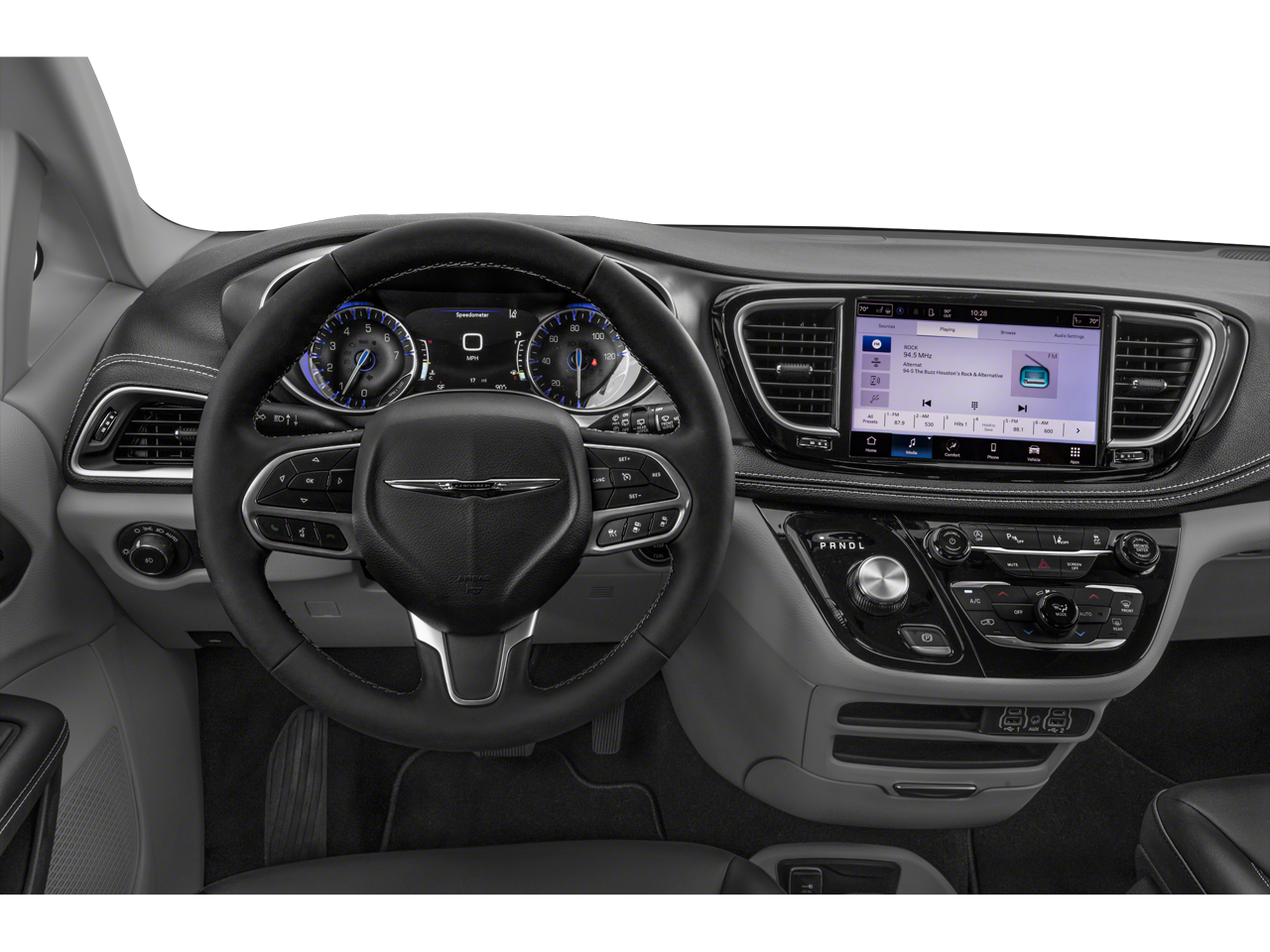 2023 Chrysler Pacifica Limited Limited 13 Speakers, 3.25 Axle Ratio, 3rd row seats: split-bench, 4-Wheel Disc Brakes, ABS brakes, Air Conditioning, Alloy wheels, AM/FM radio: SiriusXM 360L, Apple CarPlay/Android Auto, Audio memory, Auto-dimming Rear-View mirror, Automatic temperature control, Black Seats, Bodyside moldings, Brake assist, Bumpers: body-color, Compass, Delay-off headlights, Driver door bin, Driver vanity mirror, Driver's Seat Mounted Armrest, Dual front impact airbags, Dual front side impact airbags, Electronic Stability Control, Emergency communication system: SiriusXM Guardian, Four wheel independent suspension, Front anti-roll bar, Front Bucket Seats, Front dual zone A/C, Front fog lights, Front reading lights, Fully automatic headlights, Garage door transmitter, Heated door mirrors, Heated front seats, Heated rear seats, Heated steering wheel, Illuminated entry, Integrated Active Noise Cancellation, Knee airbag, Low tire pressure warning, Memory seat, Nappa Leather Bucket Seats, Navigation System, Occupant sensing airbag, Outside temperature display, Overhead airbag, Overhead console, Panic alarm, ParkView Rear Back-Up Camera, Passenger door bin, Passenger seat mounted armrest, Passenger vanity mirror, Power door mirrors, Power driver seat, Power Folding 3rd Row Seat, Power Liftgate, Power moonroof, Power passenger seat, Power steering, Power windows, Quick Order Package 27P, Radio data system, Radio: Uconnect 5 Nav w/10.1 Display, Rain sensing wipers, Rear air conditioning, Rear reading lights, Rear window defroster, Rear window wiper, Reclining 3rd row seat, Remote keyless entry, Roof rack, Security system, Speed control, Split folding rear seat, Spoiler, Steering wheel mounted audio controls, Tachometer, Telescoping steering wheel, Tilt steering wheel, Touring Suspension, Traction control, Trip computer, Turn signal indicator mirrors, Variably intermittent wipers, Ventilated front seats, Voltmeter, Wheels: 18 x 7.5 Painted Aluminum Design 2. 19/28 City/Highway MPG