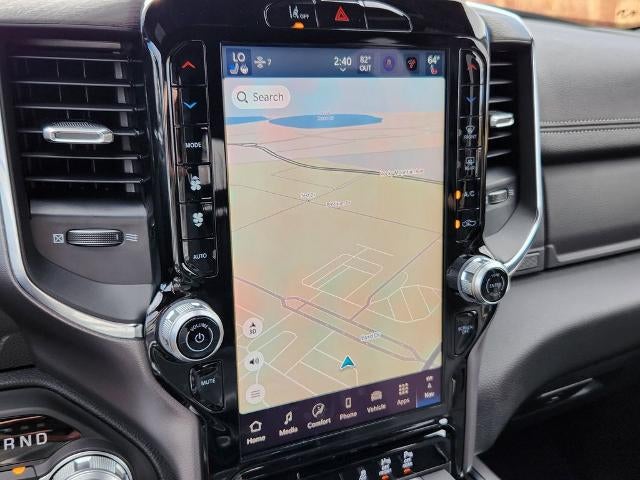 CARFAX One-Owner. 2026 Ram 1500 Laramie Laramie 10 Speakers, 33 Gallon Fuel Tank, 4-Wheel Disc Brakes, 4G LTE Wi-Fi Hot Spot, ABS brakes, Accent Color Premium Power Mirrors, Active Noise Control System, Adjustable pedals, Air Conditioning, Alloy wheels, AM/FM radio: SiriusXM with 360L, Apple CarPlay/Android Auto, Audio memory, Auto High-beam Headlights, Auto Power-Folding Mirrors, Auto-dimming door mirrors, Auto-Dimming Exterior Driver Mirror, Auto-dimming Rear-View mirror, Automatic temperature control, Bed Utility Group, Black Interior Accents, Black Painted Exterior Mirrors Caps, Body Color Front Bumper, Body Color Rear Bumper with Step Pads, Brake assist, Bridgestone Brand Tires, Bumpers: chrome, Chrome Exterior Mirrors, Compass, Connected Travel and Traffic Services, Connectivity - US/Canada, Convex Wide-Angle Exterior Mirror Insert, Delay-off headlights, Driver door bin, Driver vanity mirror, Dual front impact airbags, Dual front side impact airbags, Electronic Stability Control, Exterior 115V AC Outlet, Exterior Mirrors Courtesy Lamps, Exterior Mirrors with Heating Element, Exterior Mirrors with Memory, Exterior Mirrors with Supplemental Signals, Front anti-roll bar, Front Bucket Seats, Front Center Armrest w/Storage, Front dual zone A/C, Front fog lights, Front License Plate Bracket, Front reading lights, Front wheel independent suspension, Fully automatic headlights, Garage door transmitter, GPS Navigation, Grille Surround 3 Body Color Tex 2 Black, Heated door mirrors, Heated front seats, Heated rear seats, Heated steering wheel, Illuminated entry, Integrated Center Stack Radio, Integrated Voice Command with Bluetooth®, Laramie Level 1 Equipment Group, Leather steering wheel, Leather Trimmed Bucket Seats, Low tire pressure warning, Memory seat, MOPAR 4 Adjustable Cargo Tie-Down Hooks, MOPAR Front and Rear Rubber Floor Mats, MOPAR Spray in Bedliner, Navigation System, Occupant sensing airbag, Off-Road Information Pages, Outside temperature display, Overhead airbag, Overhead console, Panic alarm, ParkView Rear Back-Up Camera, Passenger door bin, Passenger vanity mirror, Pedal memory, Power door mirrors, Power driver seat, Power passenger seat, Power steering, Power windows, Quick Order Package 27H Laramie, Radio data system, Radio: Uconnect 5 Navigation with 12.0" Display, Rain Sensitive Windshield Wipers, RAM Grille Badge - Chrome, Rear anti-roll bar, Rear reading lights, Rear seat center armrest, Rear step bumper, Remote keyless entry, Remote Tailgate Release, Security system, SiriusXM Radio Service, SiriusXM with 360L, Speed control, Split folding rear seat, Sport Appearance Package, Sport Performance Hood, Steering wheel mounted audio controls, Tachometer, Telescoping steering wheel, Tilt steering wheel, Traction control, Trip computer, Turn signal indicator mirrors, USB Host Flip, Variably intermittent wipers, Ventilated front seats, Voltmeter, Wheels: 20" x 9" Premium Paint/Polish. Odometer is 809 miles below market average!