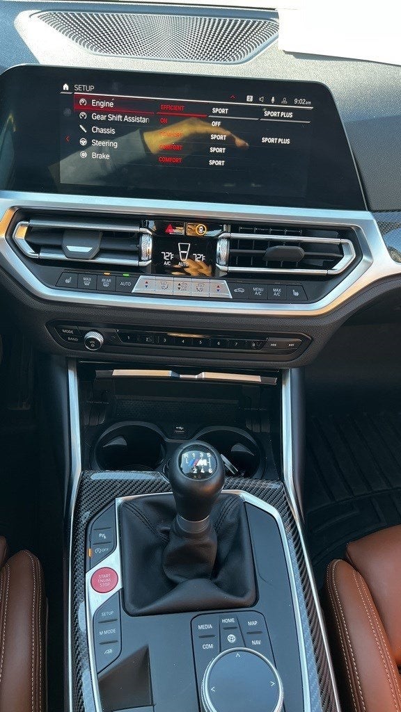 Clean CARFAX. 2022 BMW M3 LOW MILES!, It's a Real Manual, Apple Car Play, Harmon Kardon, 16 Speakers, 4-Wheel Disc Brakes, ABS brakes, Adaptive suspension, Air Conditioning, Alloy wheels, AM/FM radio: SiriusXM with 360L, Apple CarPlay & Android Auto Compatibility, Auto High-beam Headlights, Auto-dimming door mirrors, Auto-dimming Rear-View mirror, Automatic temperature control, BMW Assist eCall, BMW TeleServices, Brake assist, Bumpers: body-color, Carbon Fiber Trim, Compass, ConnectedDrive Services, Delay-off headlights, Driver door bin, Driver vanity mirror, Dual front impact airbags, Dual front side impact airbags, Electronic Stability Control, Emergency communication system: BMW Assist eCall, Enhanced Bluetooth®, Extended Merino Leather Seat Upholstery, Exterior Parking Camera Rear, Four wheel independent suspension, Front anti-roll bar, Front Bucket Seats, Front Center Armrest, Front dual zone A/C, Front reading lights, Fully automatic headlights, Garage door transmitter, harman/kardon Surround Sound System, harman/kardon® Speakers, Heated door mirrors, Heated Front Seats, Heated front seats, Illuminated entry, Knee airbag, Leather Shift Knob, Live Cockpit Pro w/Navigation, Low tire pressure warning, Lumbar Support, M Sport Seats, Memory seat, Moonroof, Navigation System, Occupant sensing airbag, Outside temperature display, Overhead airbag, Panic alarm, Passenger door bin, Passenger vanity mirror, Power door mirrors, Power driver seat, Power Front Seats, Power passenger seat, Power steering, Power windows, Radio data system, Radio: AM/FM Audio System, Rain sensing wipers, Rear air conditioning, Rear anti-roll bar, Rear reading lights, Rear window defroster, Remote keyless entry, Security system, SiriusXM w/360L, Speed control, Speed-sensing steering, Speed-Sensitive Wipers, Split folding rear seat, Spoiler, Sport steering wheel, Steering wheel mounted audio controls, Tachometer, Telescoping steering wheel, Tilt steering wheel, Traction control, Trip computer, Turn signal indicator mirrors, Variably intermittent wipers, Wheels: 18x9.5 Fr. & 19x10.5Rr. M Orbit Gray, Wheels: 19x9.5 Fr. & 20x10.5 Rr. M Bi-color.