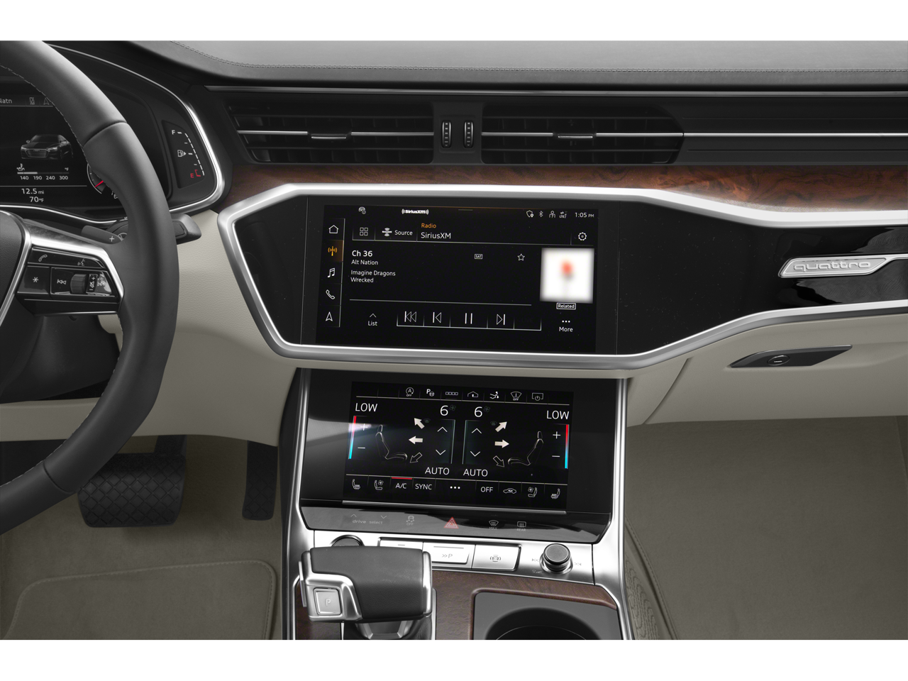 - Radio: Audi MMI Navigation Plus -inc: MMI touch response (10.1" upper screen), Audi connect CARE (limited time subscription), Audi connect PLUS (6-month trial subscription, acceptance of terms required), Audi smartphone interface (wireless Apple CarPlay and Android Auto), Audi sound system, Bluetooth w/audio streaming and SiriusXM w/360L (3 month trial subscription, acceptance of terms required)
